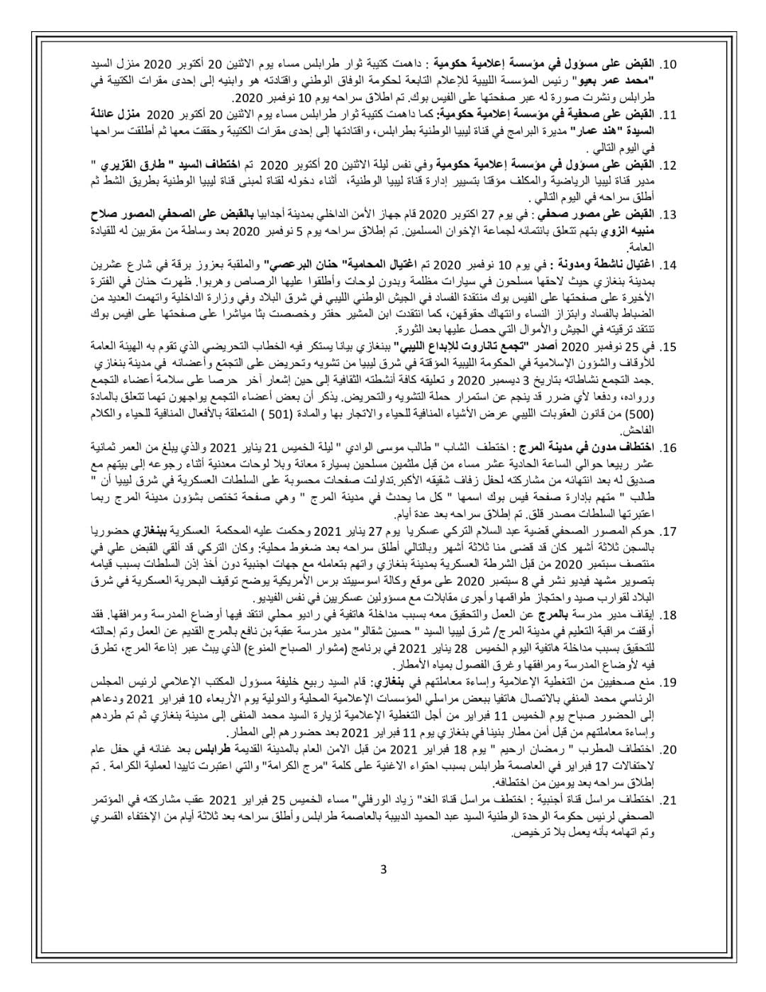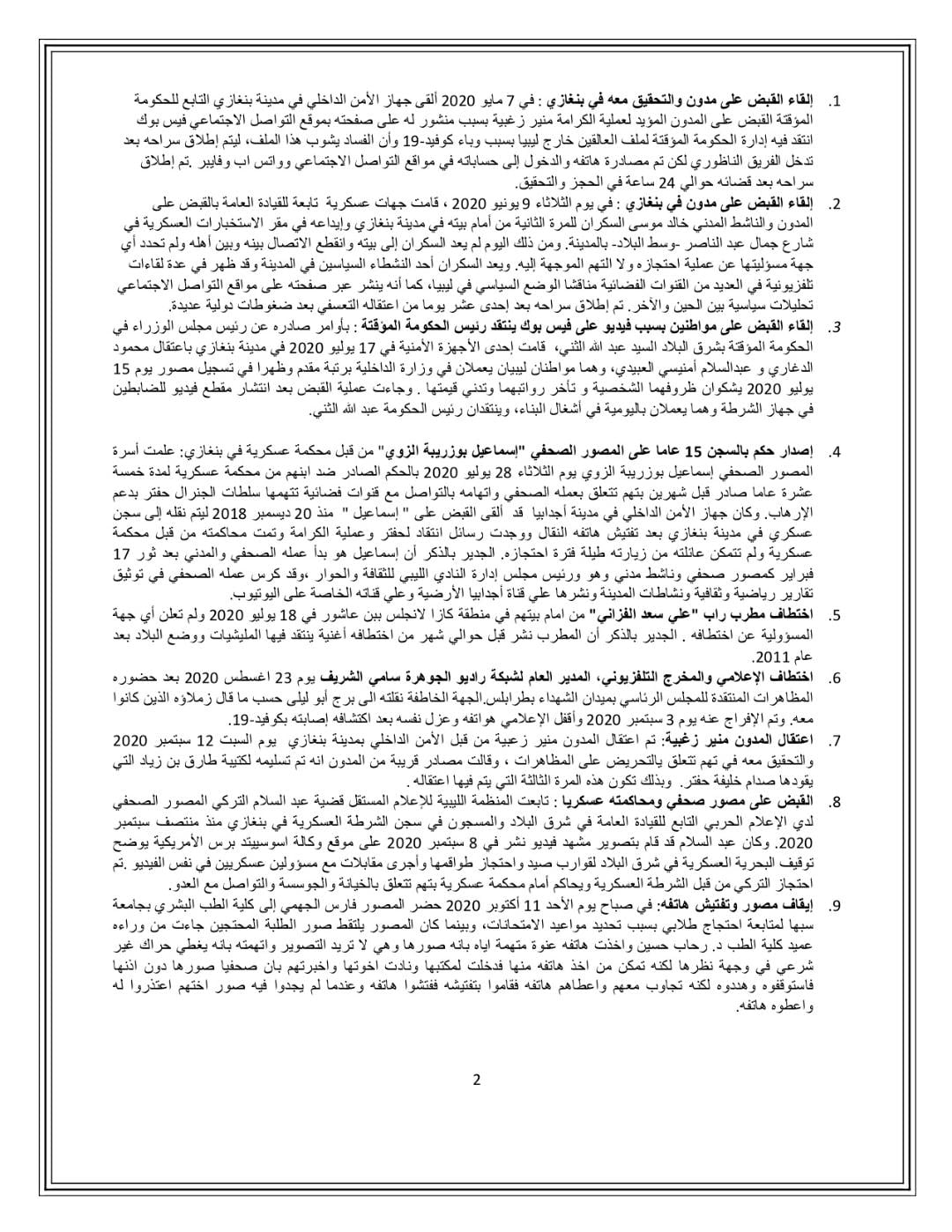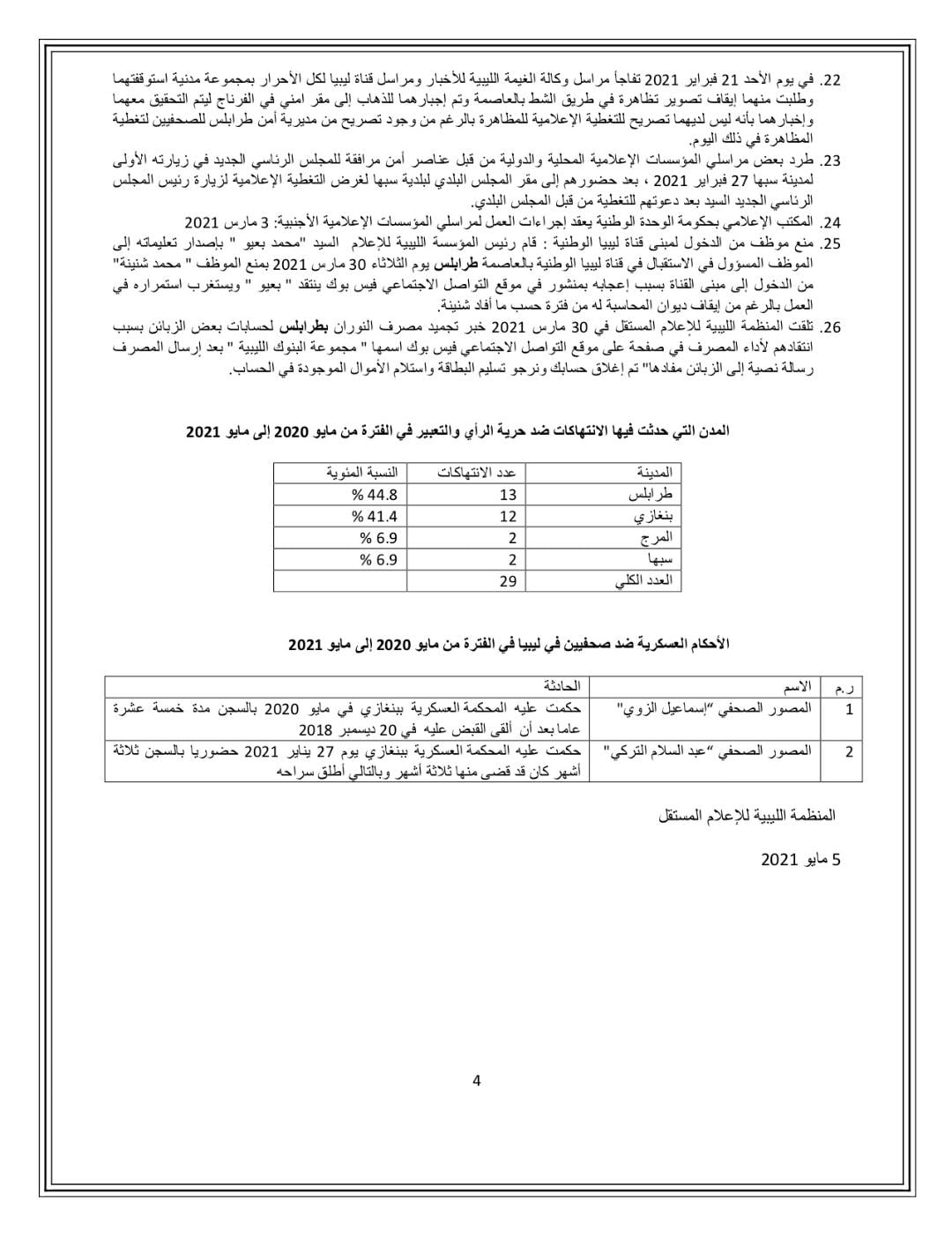 الانتهاكات ضد حرية الرأي والتعبير في ليبيا من مايو 2020 إلى مايو 2021
